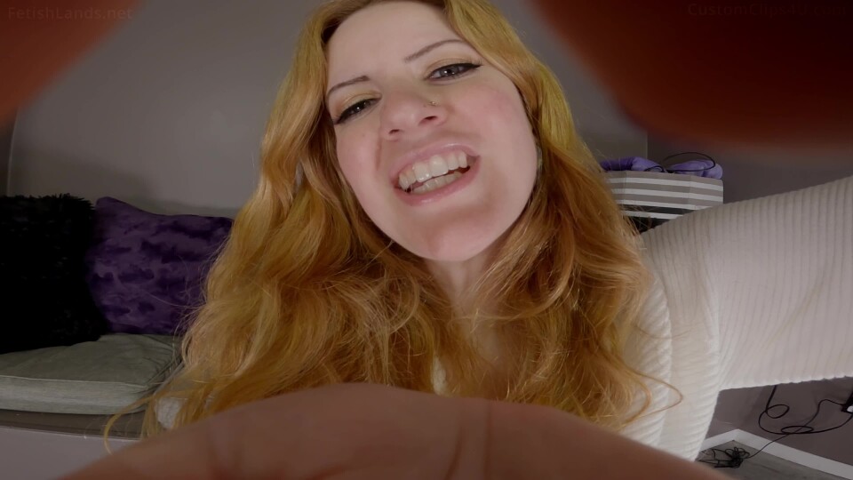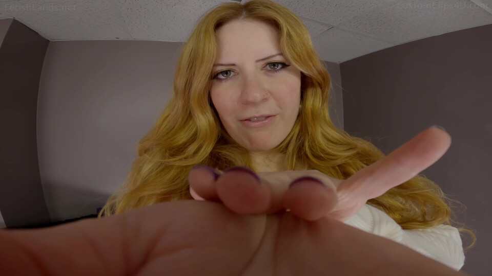 Part 5-POV full shot of her face as I'm dangled from her fingertips then, as she lays me on her open palm, have the camera show the back of her palm with her face in the background like I'm being held in the palm of her hand.