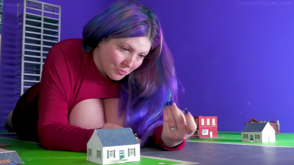 Demora has become a giantess and she calmly walks around crushing and eating people with her boobs mostly. She also levels some homes with her feet but she spares the city when they decide to worship her forever and make her Queen of the city.